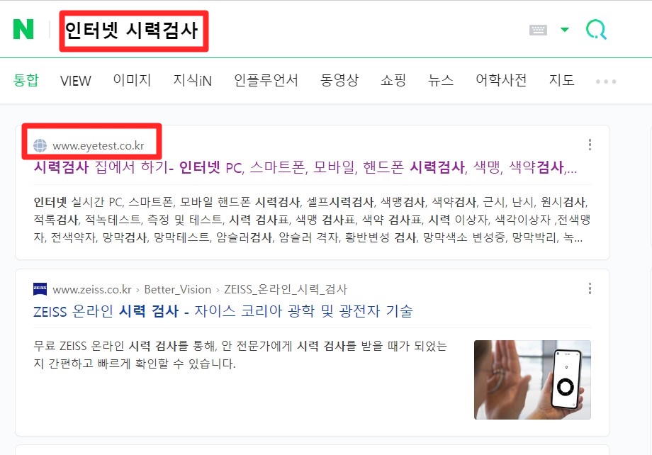 일단 검색창에다가 인터넷 시력 검사라고 입력을 해주세요.